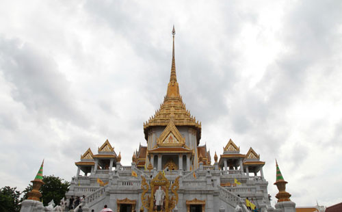 金佛寺是一座白色和金色相間的多層佛寺,美輪美奐,位于 Yaowarat 路起點(diǎn),從這里開始探索唐人街最好不過。金佛寺吸引人的主要地方除了建筑結(jié)構(gòu)美麗外,還有就是寺內(nèi)供奉的一尊純金大坐佛,這是世界上同類型佛像中最大的佛像。佛像 5 米高,5.5 噸重,估計(jì)鑄造于 13-14 世紀(jì),長期被不起眼的灰泥和石膏遮掩,直到 1955 年才意外發(fā)現(xiàn)下面隱藏的黃金!游覽位于長階梯中段的博物館需要少許入門費(fèi),但是,游覽上面的金佛像是免費(fèi)的。