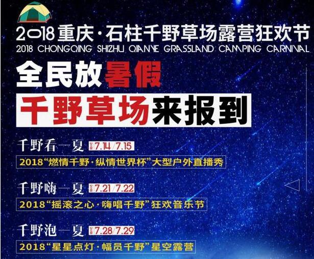 7月14日19:30在千野草場(chǎng)景區(qū)將開展2018重慶·石柱千野草場(chǎng)露營(yíng)狂歡節(jié)開幕式。